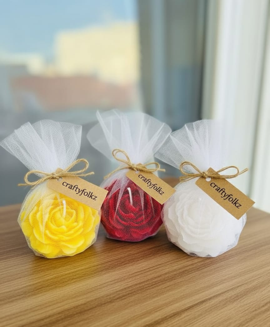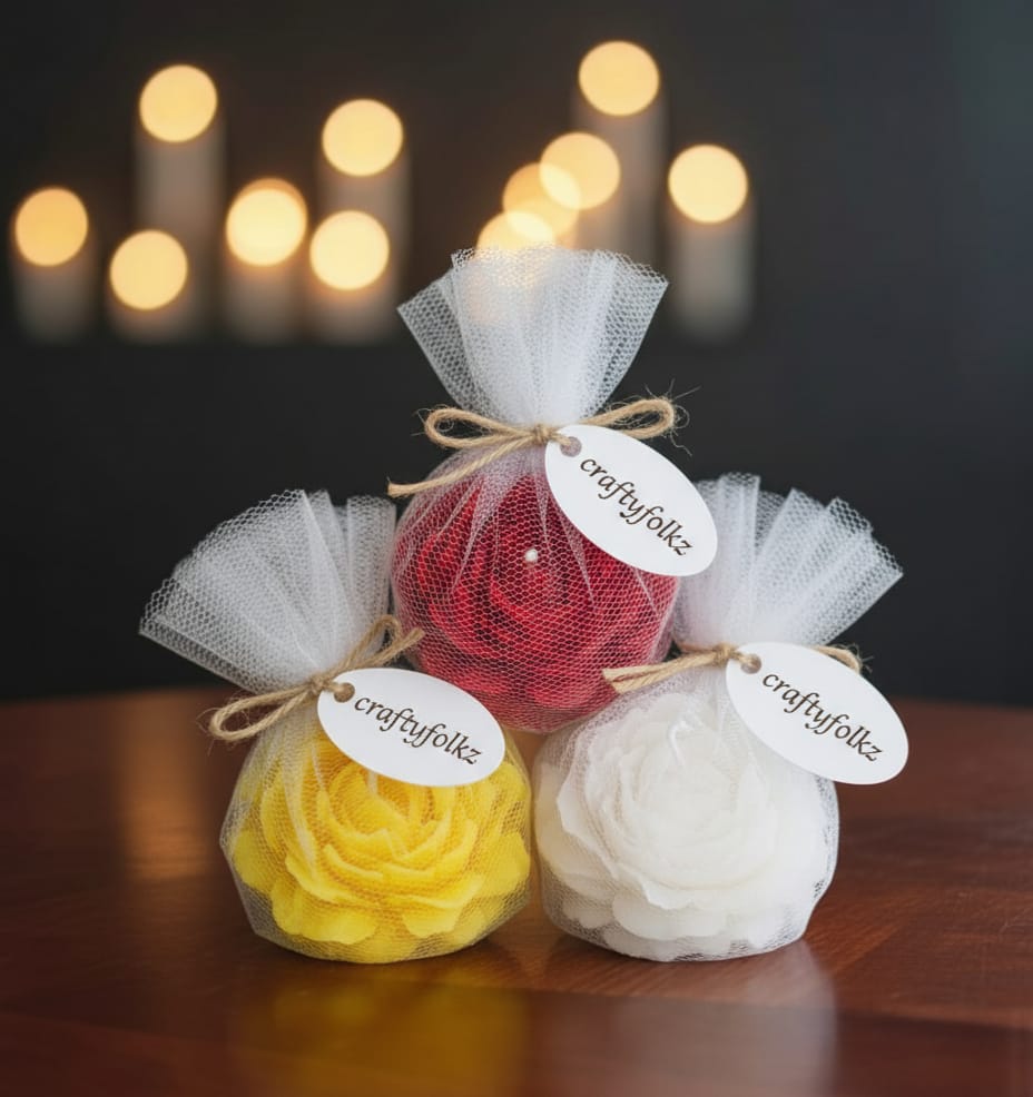 “Bloom of Elegance.” Our beautifully crafted flower candle—a delightful gift for any occasion. Wrapped in delicate tulle, it’s ready to bring a touch of charming floral scent and light to your loved one’s home.
